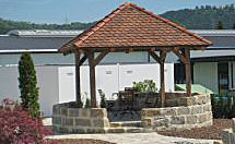 Wir führten verschiedenste Holzbauarbeiten an Gartenobjekten wie Gartenhaus, Pavillion und Mauern durch.